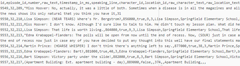 In this case we will see how to train a model that will be capable of creating new “Simpsons-Style” conversations. As input for the training we will use the file simpsons_script_lines.csv from the Simpsons dataset.